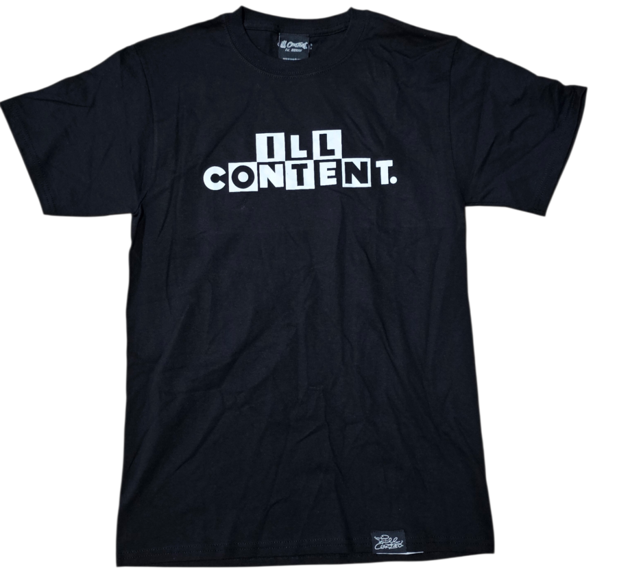 black and white ill content. logo on the chest
